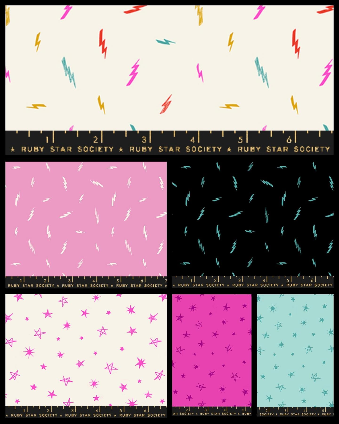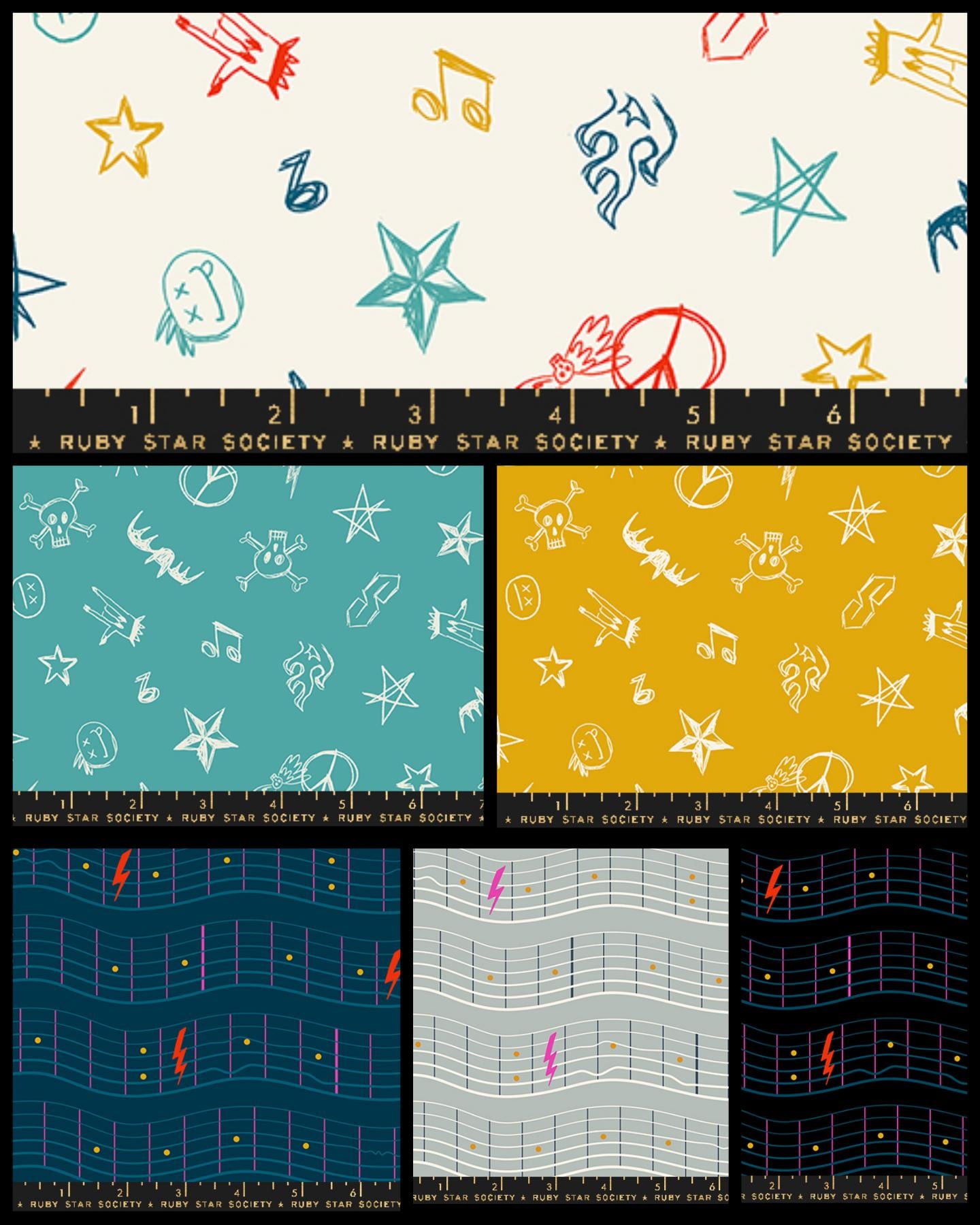 Teddy And The Bears, Sarah Watts, Ruby Star Society, Moda Fabrics, Fat Quarter Bundle, fabric bundle, modern fabric, bear fabric, lightning bolt fabric, flame fabric, splatter fabric, rock and roll fabric, quilting cotton, fabric by the yard, sewing, quilting projects, apparel fabric, home decor fabric, punk fabric, alternative fabric, Moda.